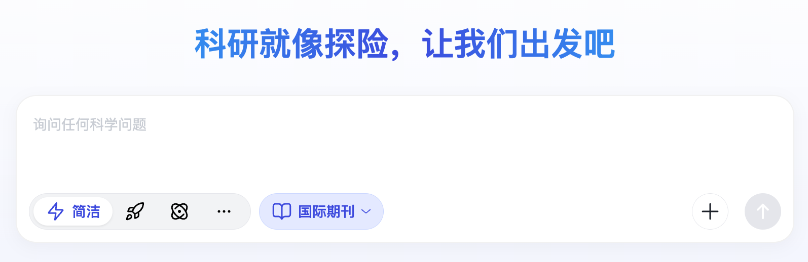 首先他们做了一个像Chatgpt的那种对话框,上面输入文字,下面选择一些特定的需求。界面上包含了三块:模型选择、学科筛选、附件上传。简单来说,就是你直接输入文字、图片甚至文件,再写一写需求,这个网站就把相关的参考文献找到了。